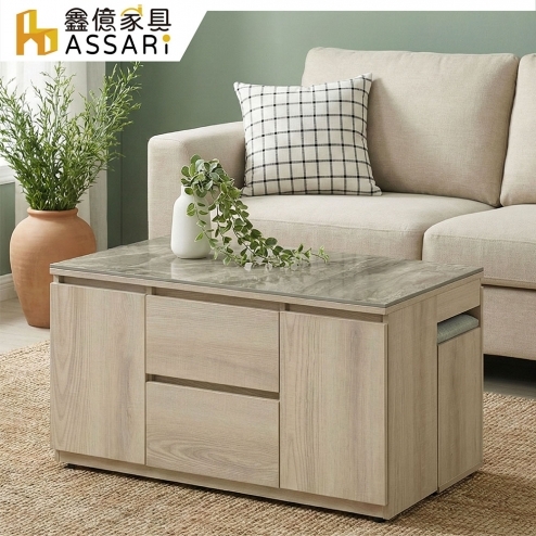 艾芮4.3尺石面大茶几(含2椅凳)(寬130x深70x高46cm)