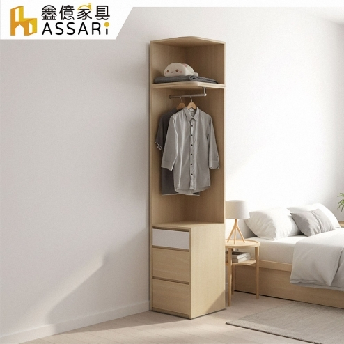 夏莉1.5尺三抽開放轉角櫃(寬45x深54x高203cm)