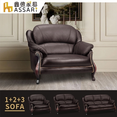 蒙特至尊金邊1+2+3人座半牛皮沙發