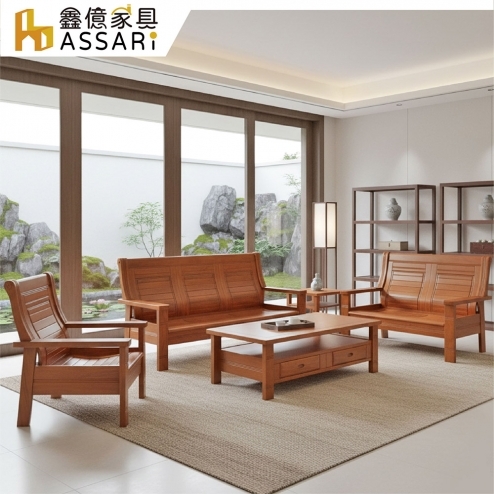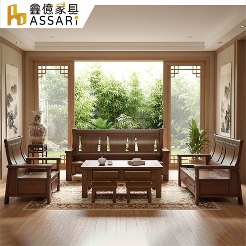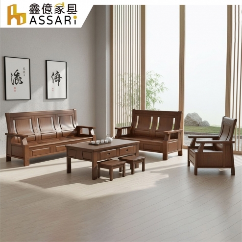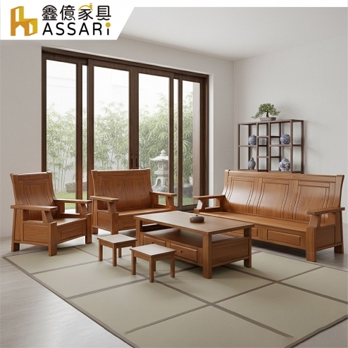 孟浩然樟木1+2+3人沙發+大小茶几(含2收納椅)