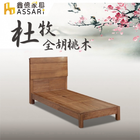 杜牧全胡桃木房間組(床頭片+床底)-單大3.5尺