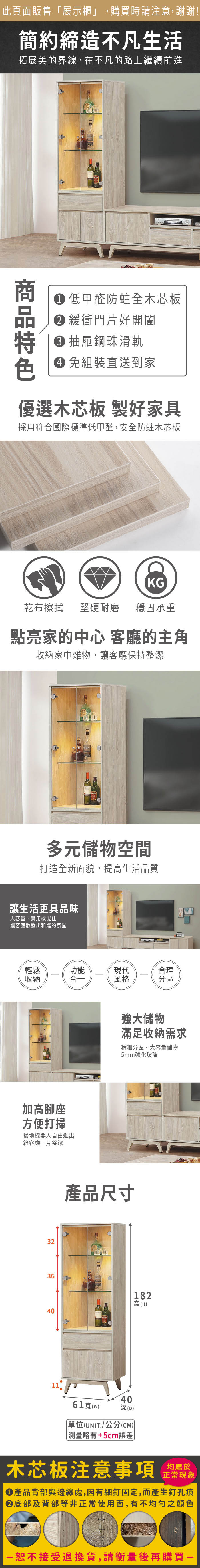 喬伊詩2尺展示櫃(寬60x深40x高182cm)