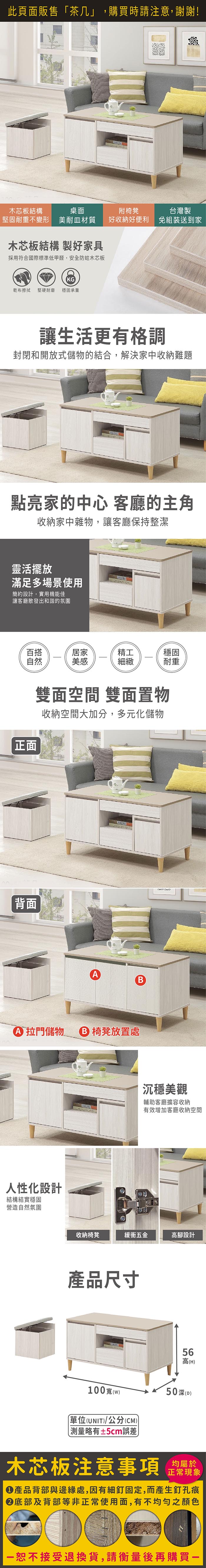 余慕3.3尺大茶几(含1椅凳)(寬100x深50x高56cm)