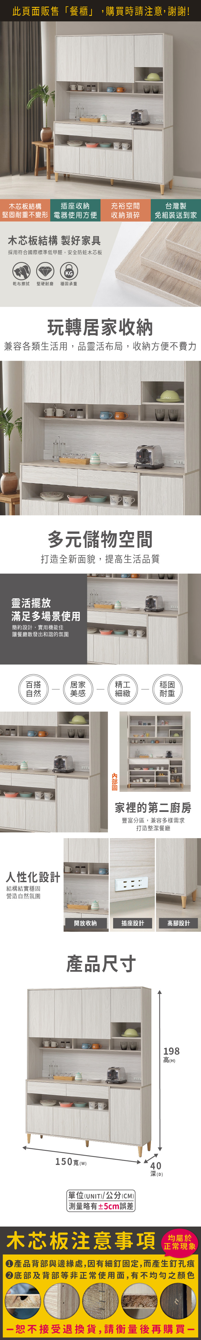 余慕5尺餐櫃全組(寬150x深40x高198cm)