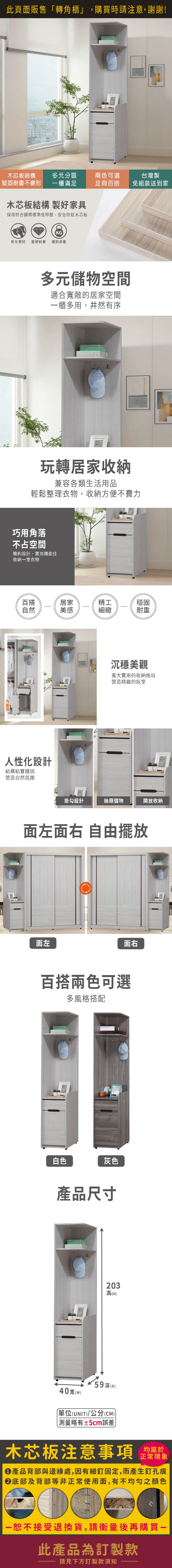 星螢1.3尺轉角櫃(寬40x深59x高203cm)