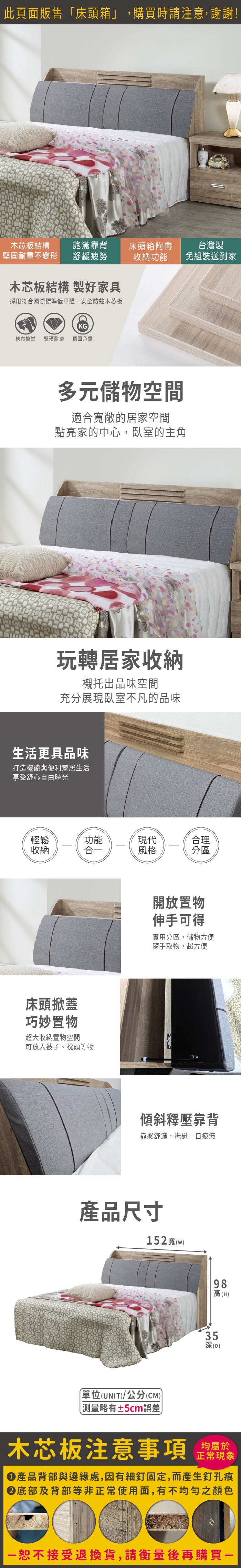 華德收納床頭箱(雙人5尺)