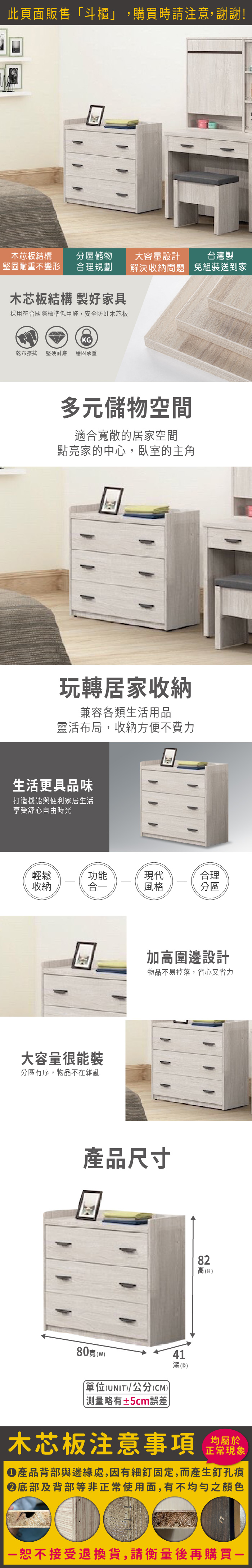 仙妮絲2.7尺三斗櫃(寬80x深41x高82cm)