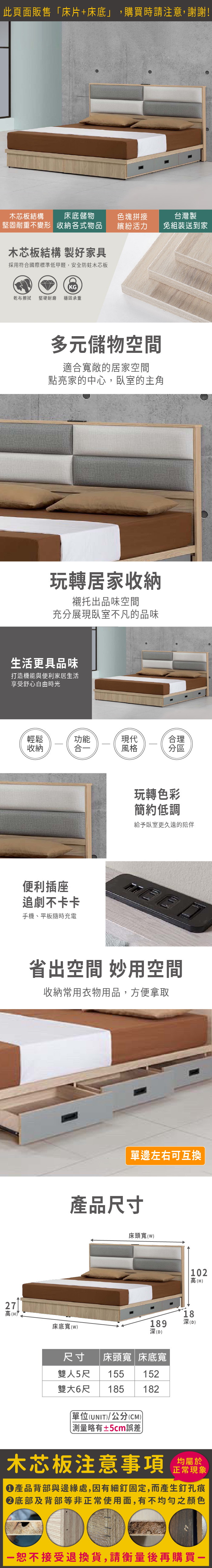 溫莎插座床組(床片+抽屜床底)雙大6尺