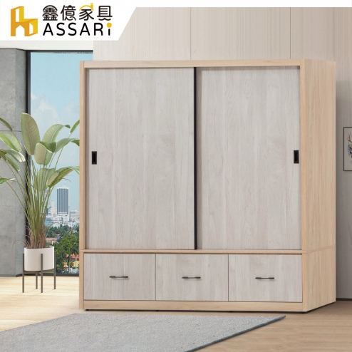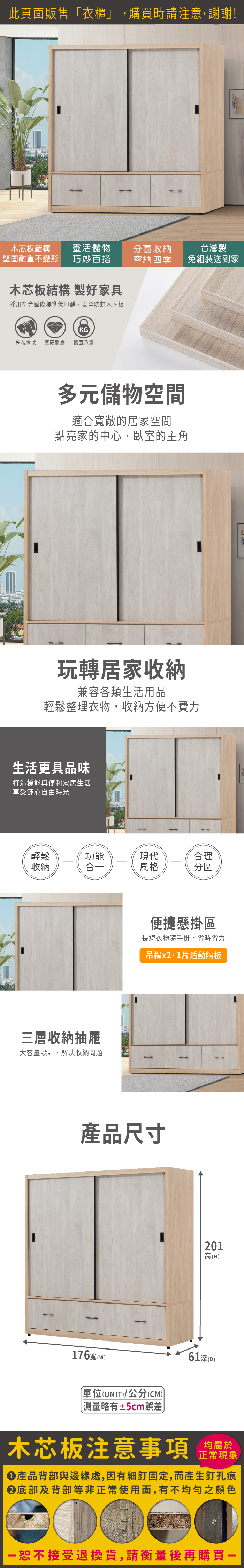溫莎5.9尺三抽推門衣櫃(寬176x深61x高201cm)