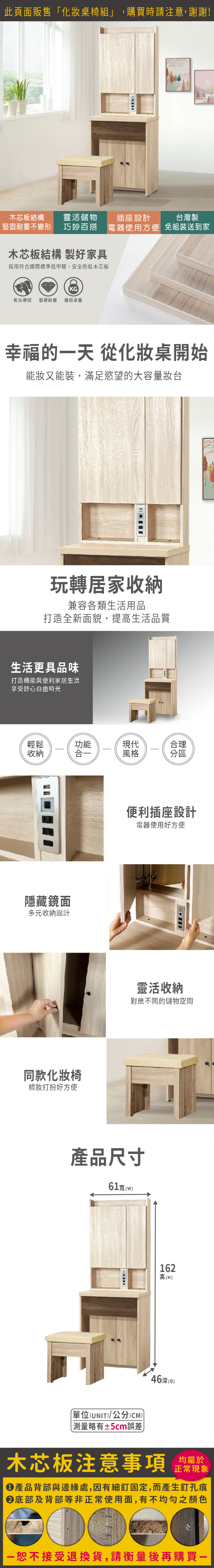 波納2尺化妝桌椅組(寬61x深46x高162cm)