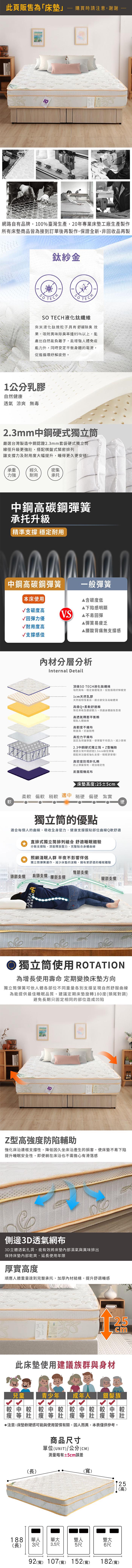 綿雲乳膠舒柔緹花硬式三線獨立筒床墊-單大3.5尺
