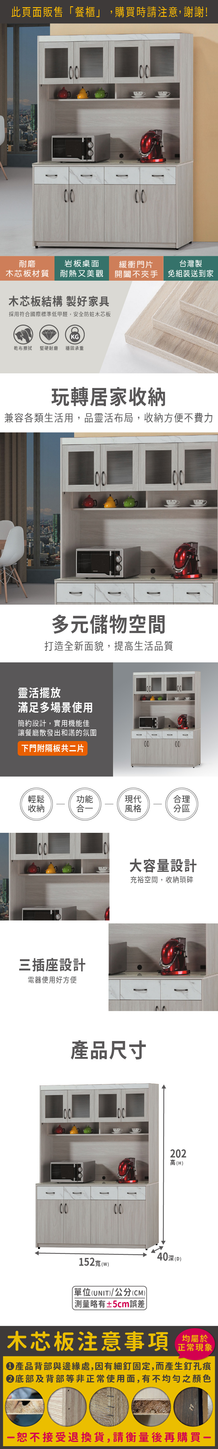 夏雪5尺餐櫃全組(寬152x深40x高202cm)