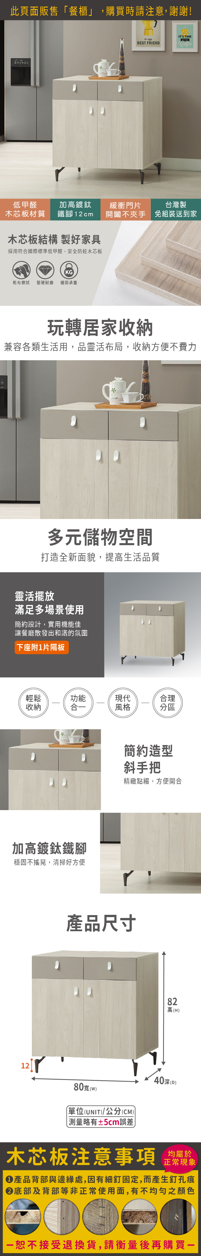 格芮2.7尺餐櫃(寬80x深40x高82cm)