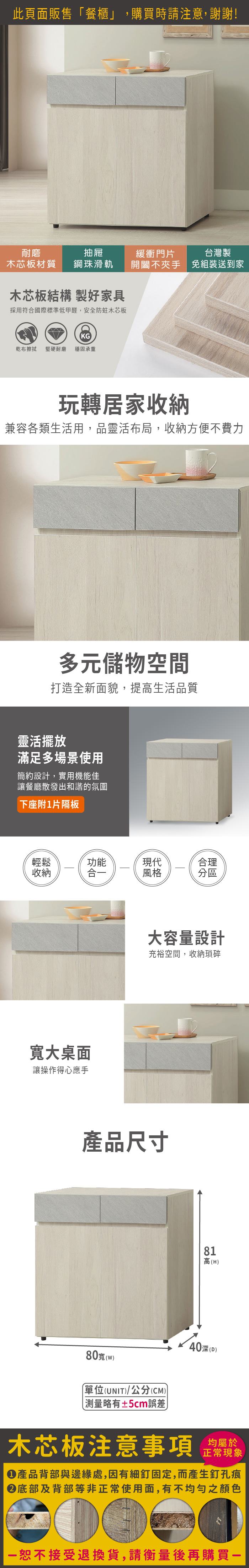 米娜2.7尺餐櫃(寬80x深40x高81cm)