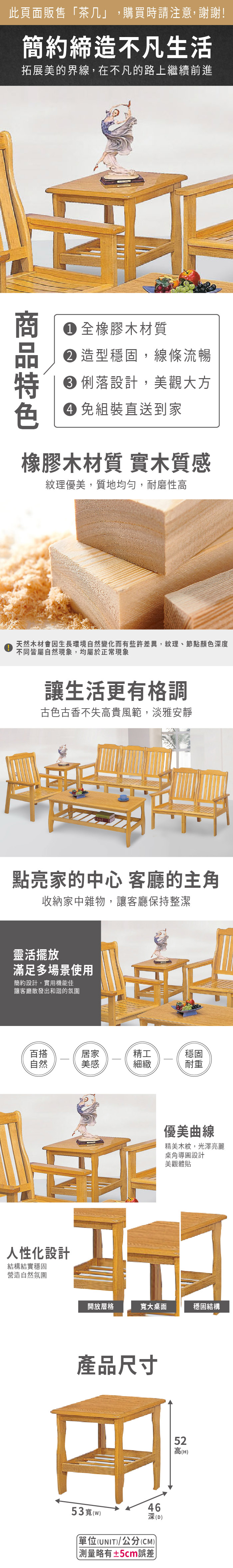 本色全實木1.7尺小茶几(寬53x深46x高52cm)