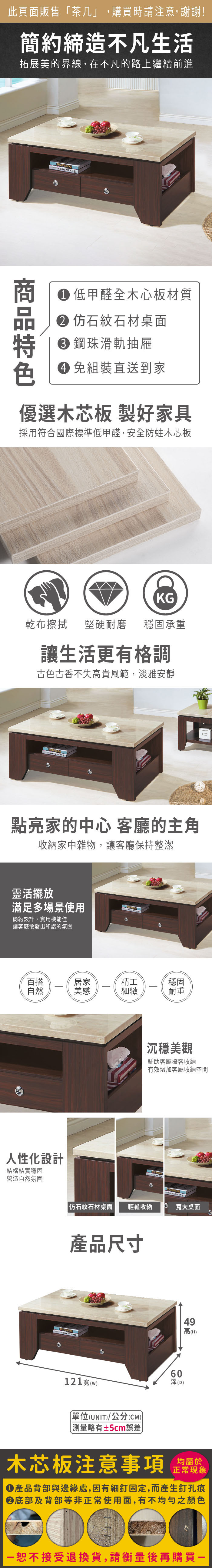 珊朵拉4尺石面大茶几(寬121x深60x高49cm)