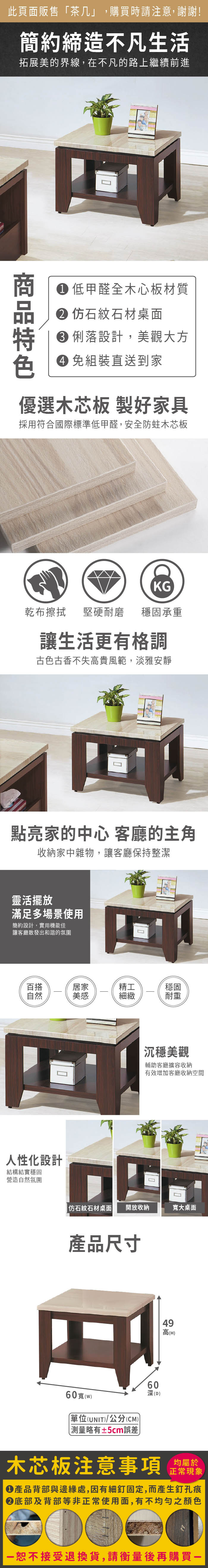 珊朵拉2尺石面小茶几(寬60x深60x高49cm)