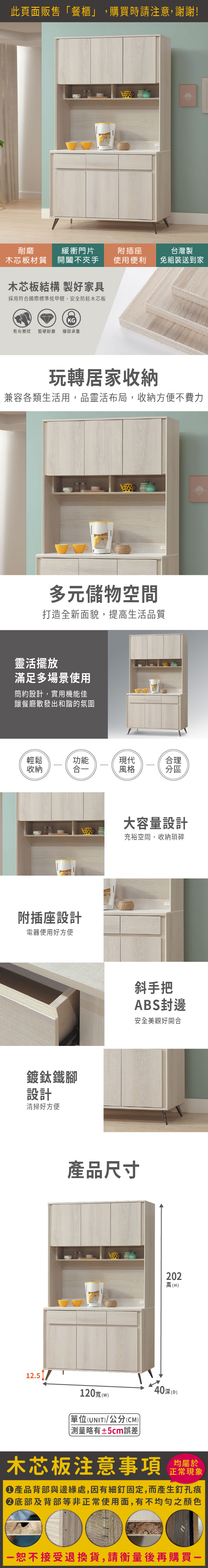 艾佳4尺餐櫃全組(寬120x深40x高202cm)