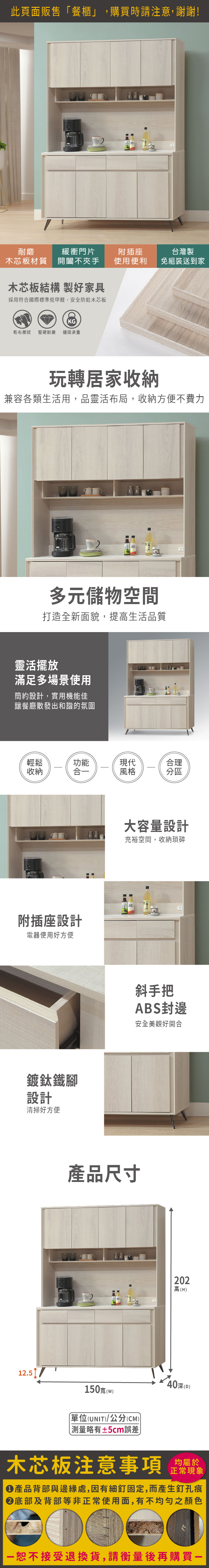 艾佳5尺餐櫃全組(寬150x深40x高202cm)
