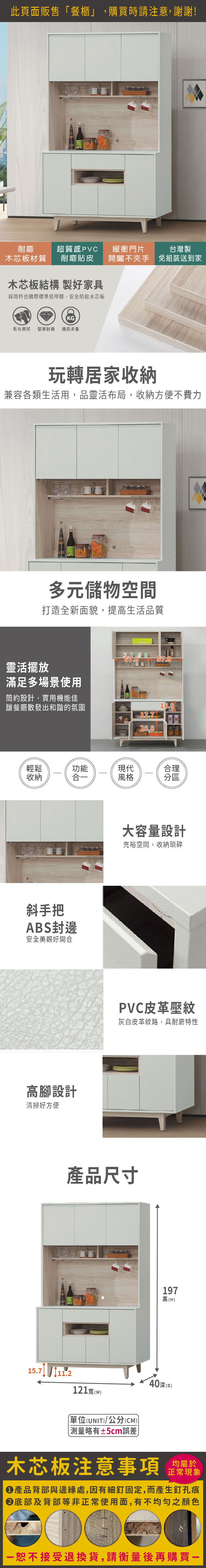 紀梵希4尺餐櫃全組(寬121x深40x高197cm)
