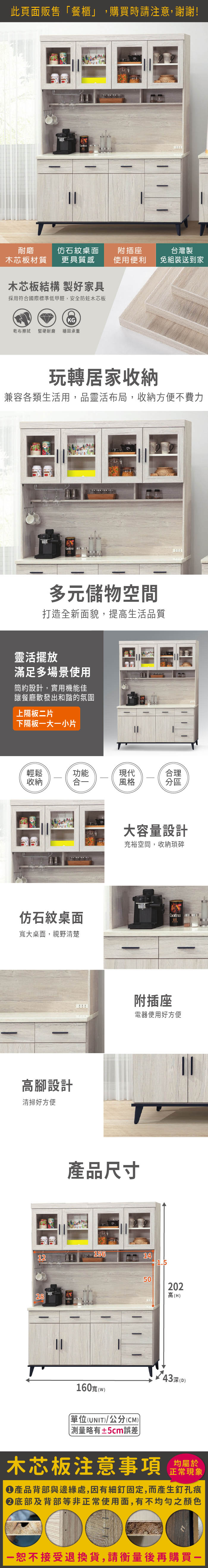洛瑪白橡木5.3尺餐櫃全組(寬160x深43x高202cm)
