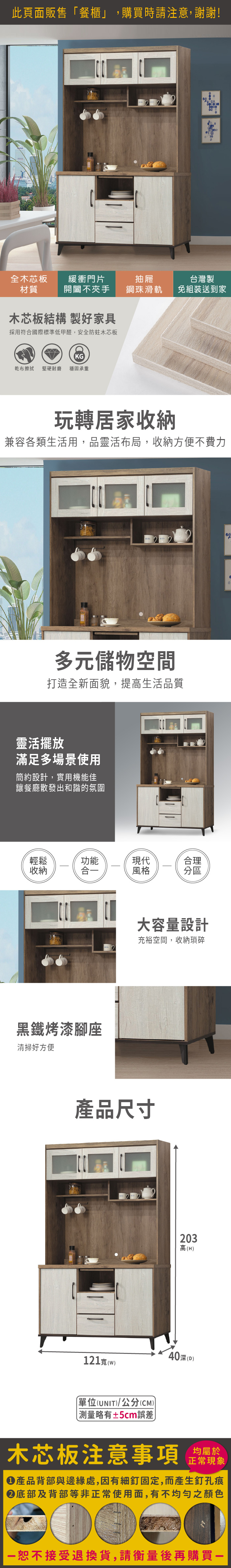 灰白4尺餐櫃全組(寬121x深40x高203cm)