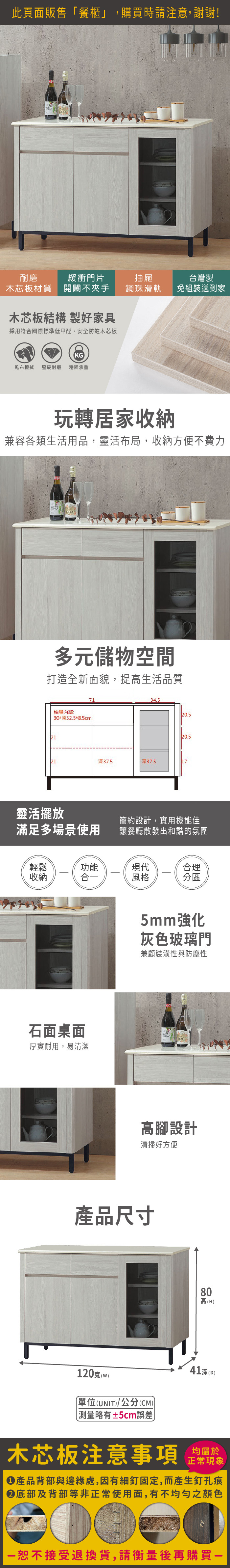 馬克斯4尺石面餐櫃(寬120x深41x高80cm)