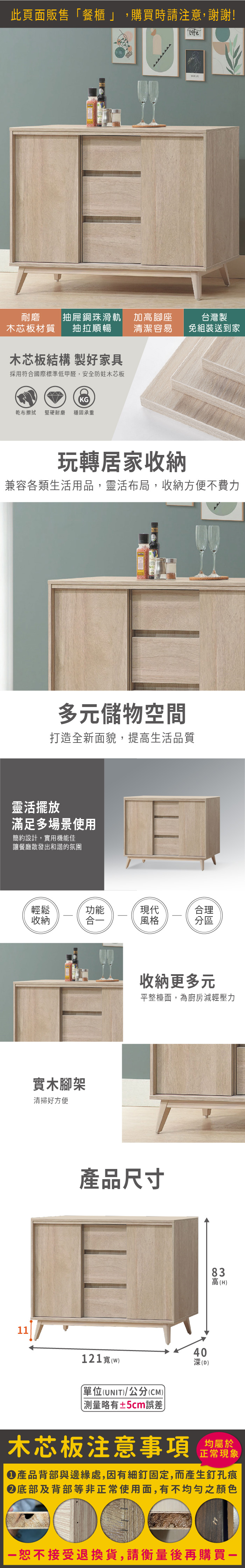 司曼特4尺餐櫃(寬121x深40x高83cm)