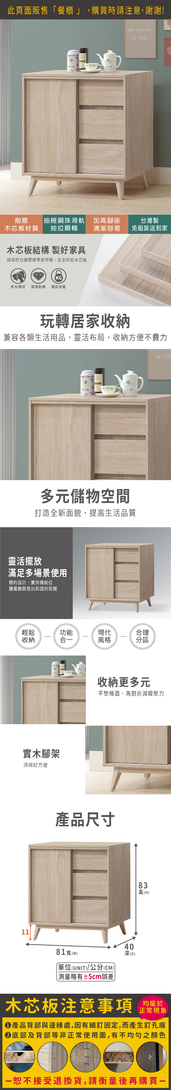 司曼特2.7尺餐櫃(寬81x深40x高83cm)