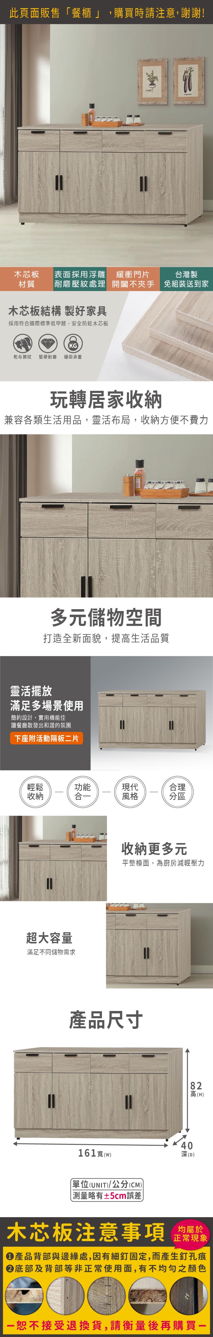 雷克斯5尺餐櫃(寬161x深40x高82cm)