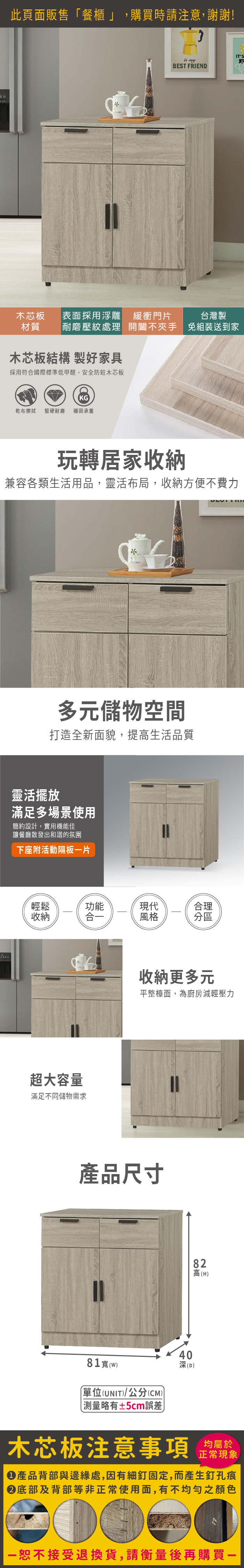 雷克斯2.7尺餐櫃(寬81x深40x高82cm)