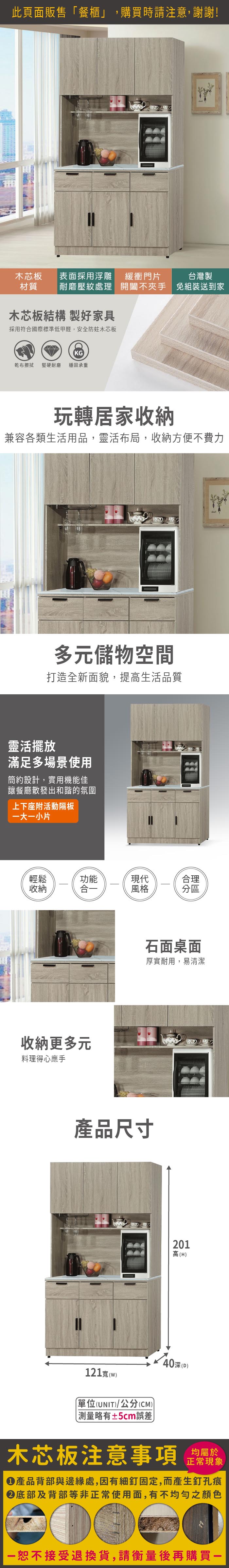 雷克斯4尺石面餐櫃全組(寬121x深40x高201cm)