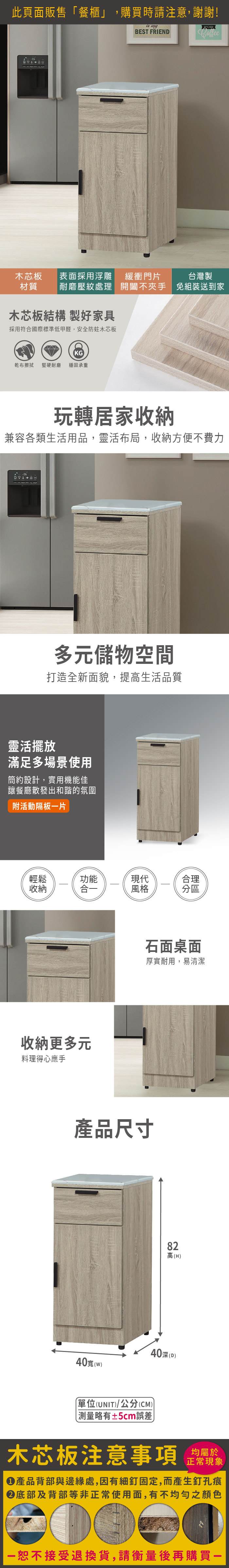 雷克斯1.3尺石面餐櫃(寬40x深40x高82cm)