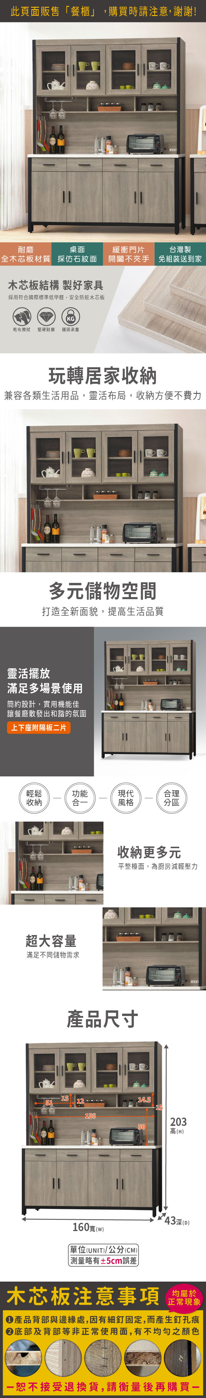 麥德爾5.3尺餐櫃全組(寬160x深43x高203cm)