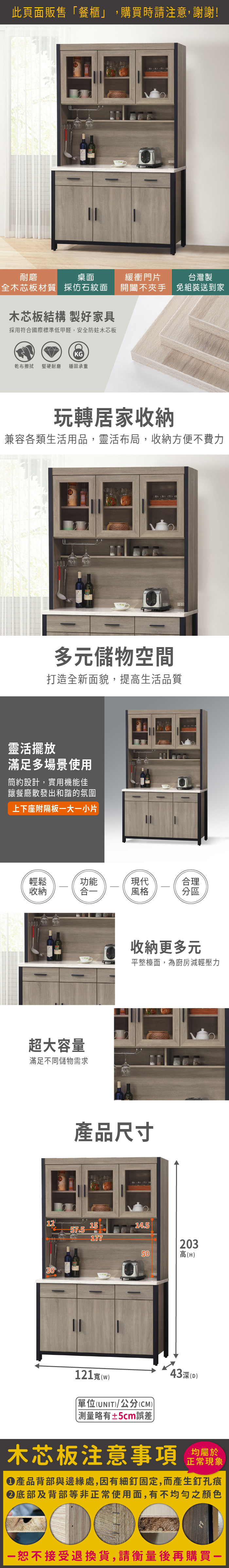 麥德爾4尺餐櫃全組(寬121x深43x高203cm)