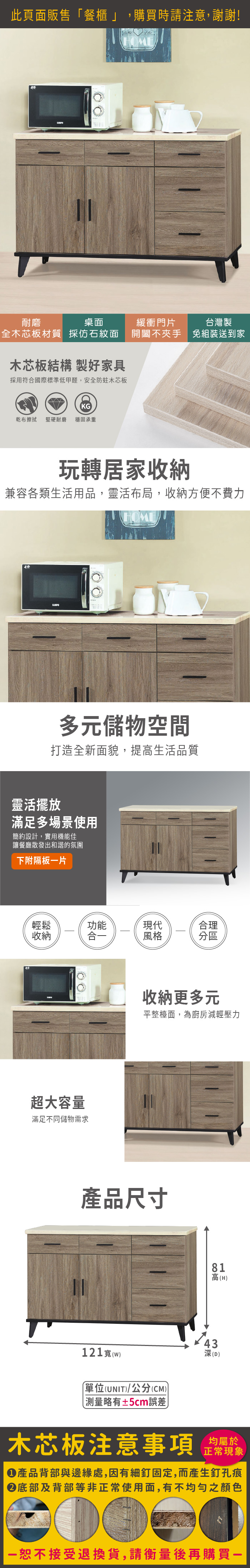 芮茲4尺餐櫃(寬121x深43x高81cm)