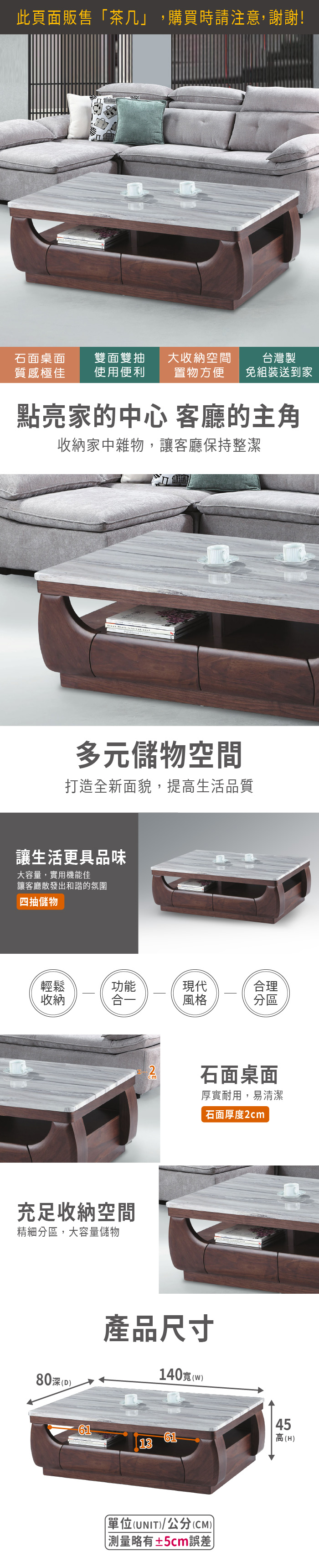 波比4.7尺石面大茶几(寬140x深80x高45cm)