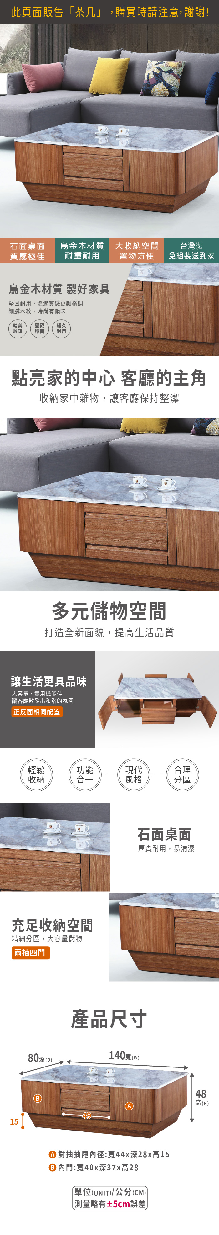 喬休爾4.7尺石面大茶几(寬140x深80x高48cm)