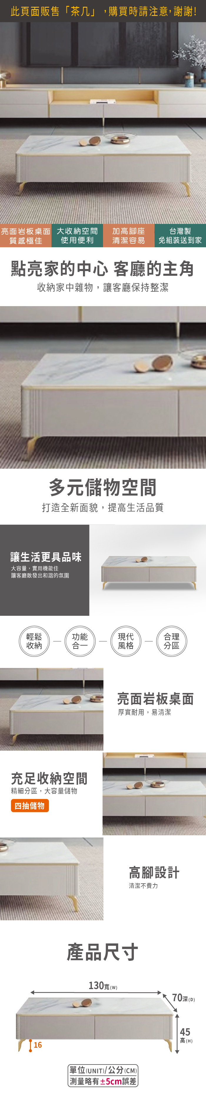 慕斯4.3尺岩板大茶几(寬130x深70x高45cm)