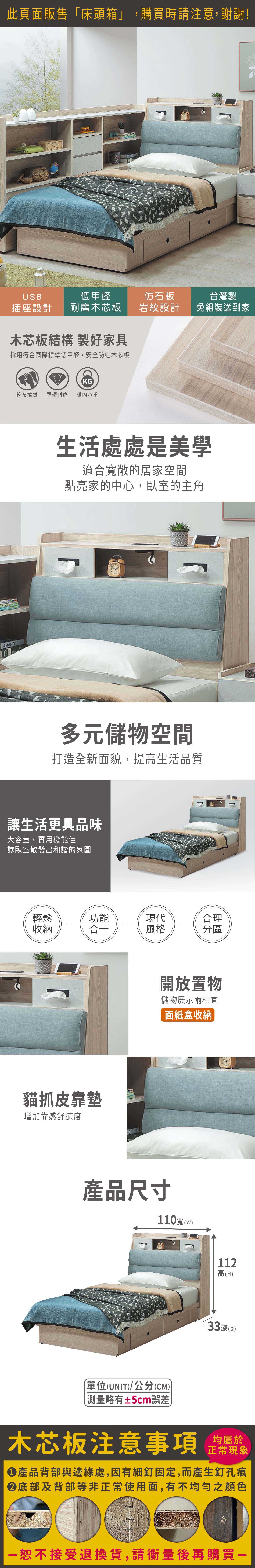 夏禾USB插座收納床頭箱(單大3.5尺)