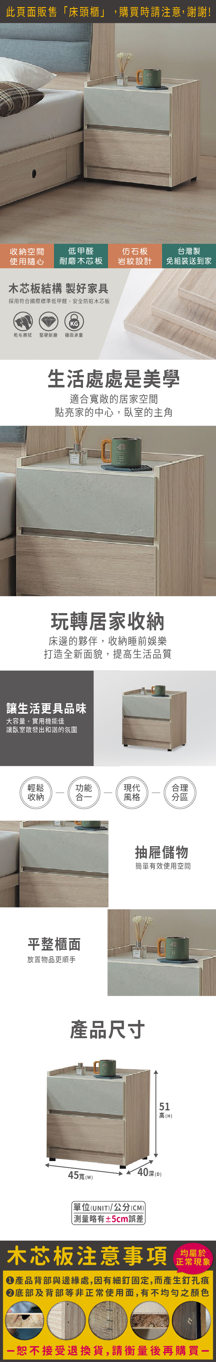 夏禾二抽床邊櫃(寬45x深40x高51cm)