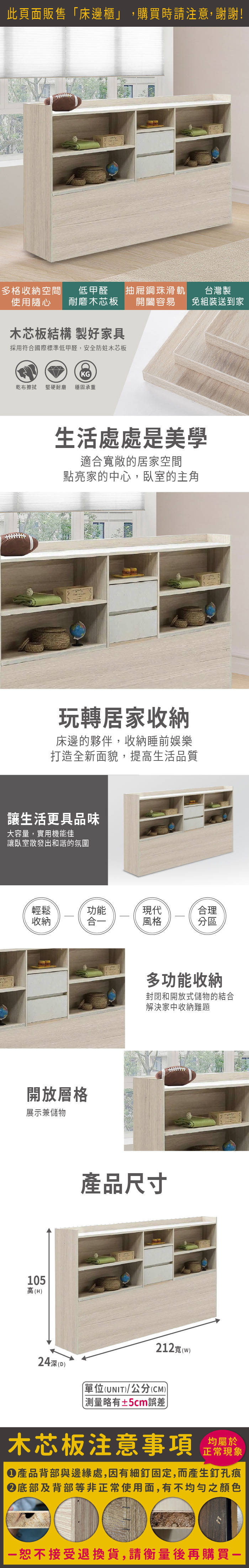 夏禾7尺床邊櫃(寬212x深24x高105cm)