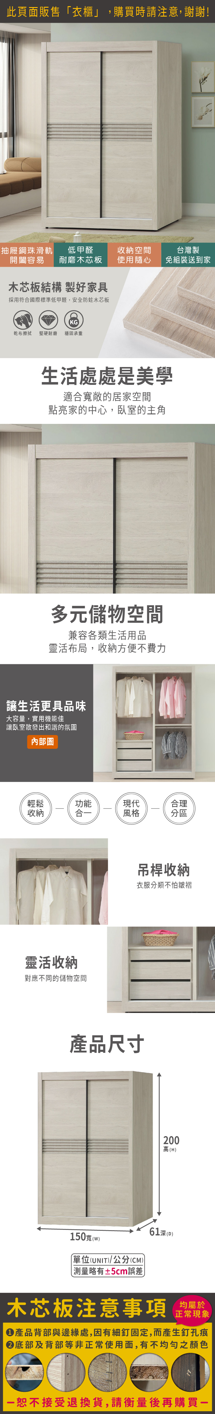 格芮5尺推門衣櫃(寬150x深61x高200cm)