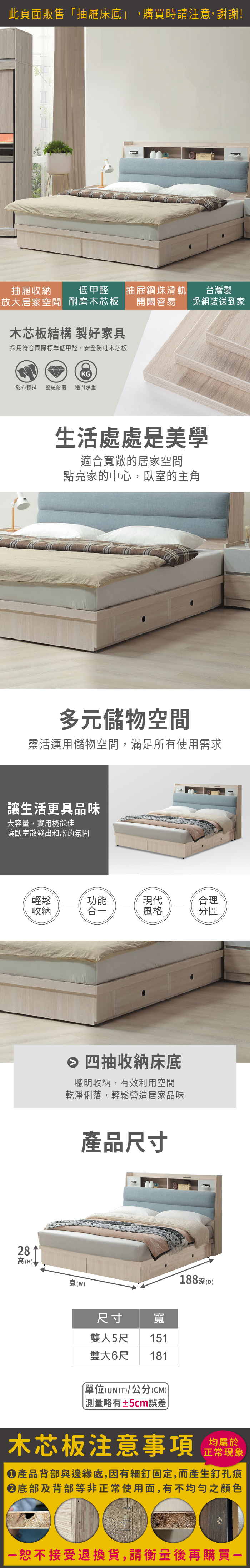 夏禾收納四抽屜床底(雙大6尺)