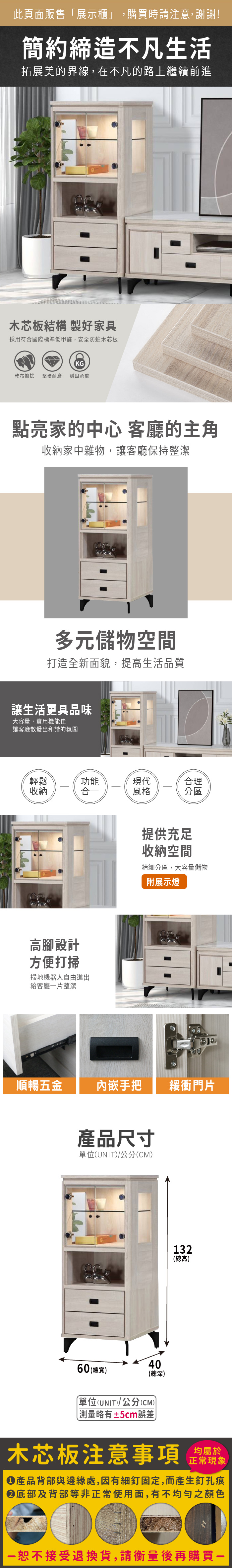 成吉2尺展示櫃(寬60x深40x高132cm)