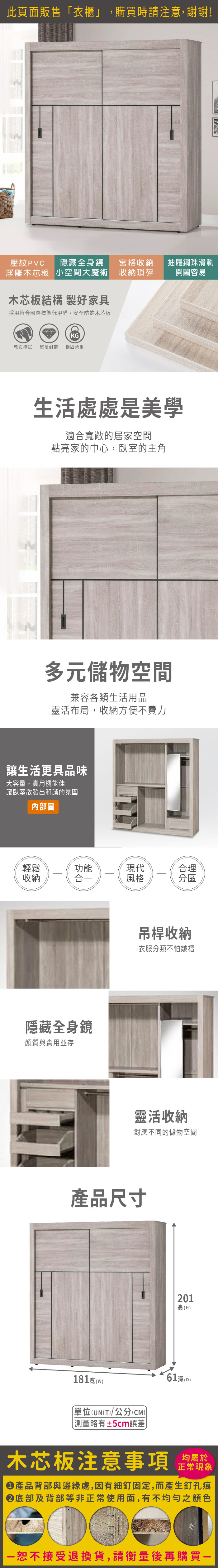班奈特6尺推門衣櫃(寬181x深61x高201cm)