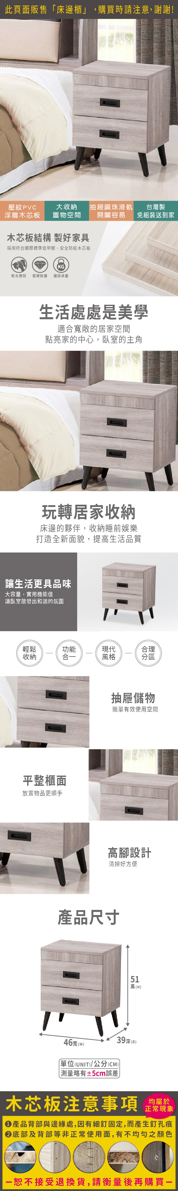 班奈特床邊櫃(寬46x深39x高51cm)