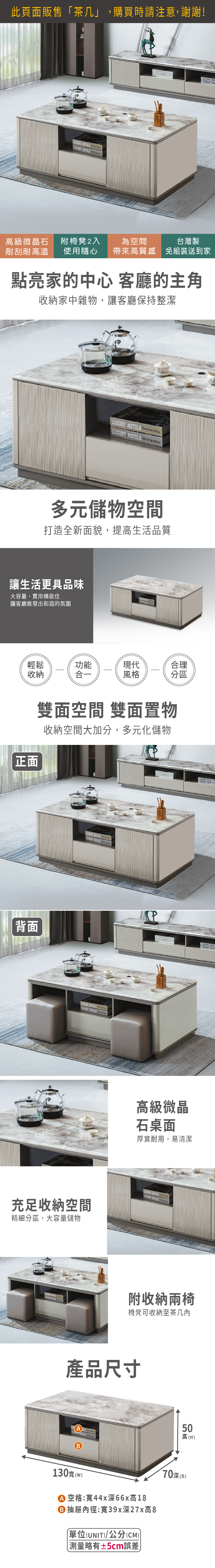 凱爾4.3尺石面大茶几(含2椅凳)(寬130x深70x高50cm)