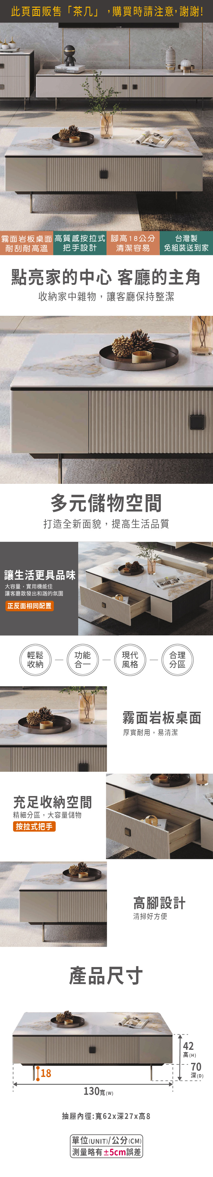 思羽4.3尺岩板大茶几(寬130x深70x高42cm)