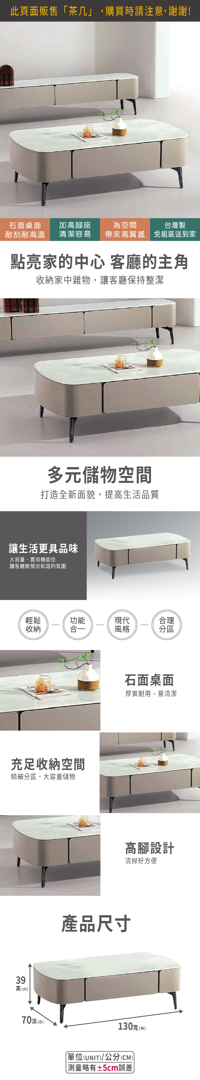 波本4.3尺石面大茶几(寬130x深70x高39cm)